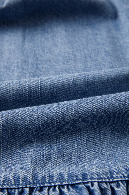 Effortlessly chic and undeniably fun, this mini dress combines timeless style with modern flair. The puff sleeves add a playful touch while the V-neckline flatters your figure with feminine elegance. Soft ruffles create graceful movement with every step, making it perfect for casual days when you want to look put-together without trying too hard. Crafted from quality denim, this loose-fitting dress is your go-to piece for weekend adventures, coffee dates, or laid-back hangouts. Cotton/Polyester