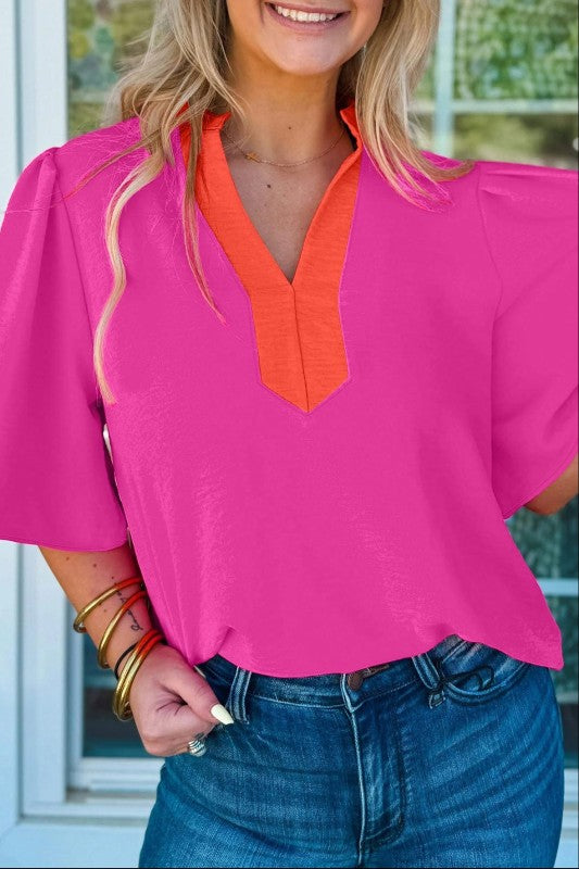Slip into effortless style with this top that's as fun as it is flattering. The soft, breathable fabric keeps you comfortable all day long, while the V-neck design beautifully frames your face and shows off those gorgeous collarbones. Wide short sleeves give you plenty of room to move and groove, and the modern colorblock contrast adds just the right amount of visual pop. Perfect for casual days when you want to look put-together without trying too hard. 100% Polyester